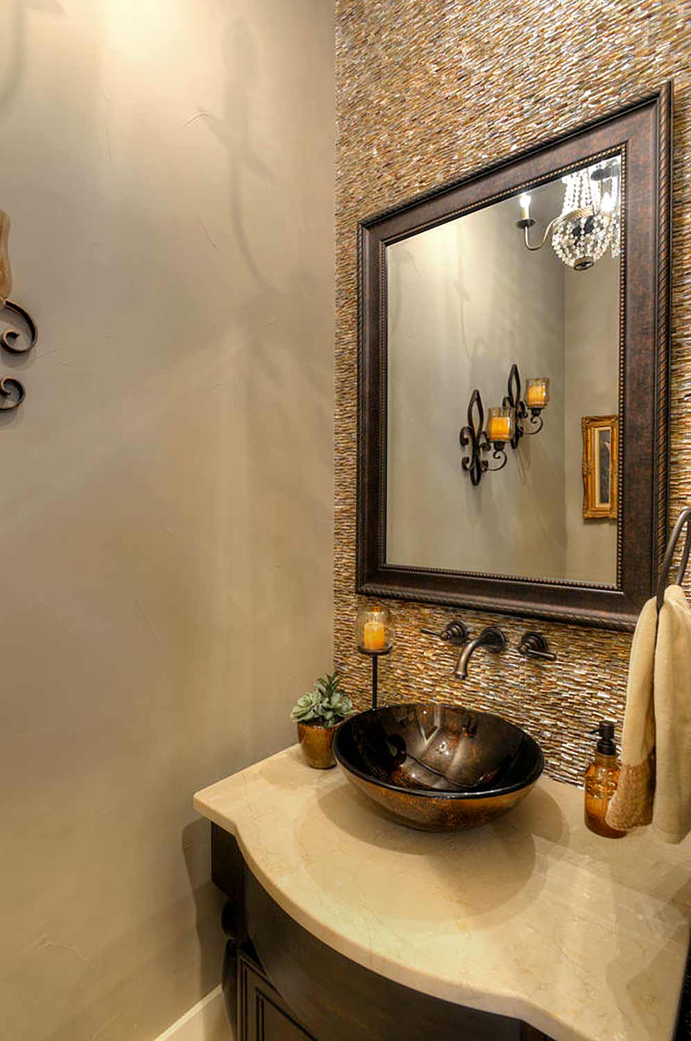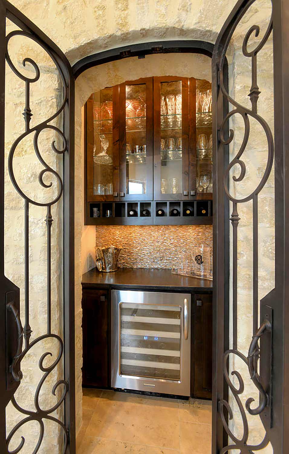 Off the kitchen is a gorgeous wine cellar that is built into the rock wall. The master suite features a coffee kitchen, sitting area that looks out on the pool, and a massive master bathroom with a beautiful tub built into an arched alcove. The outdoor living offers numerous sitting, dining and lounging areas as well as a fireplace, summer kitchen, hot tub and negative edge pool.