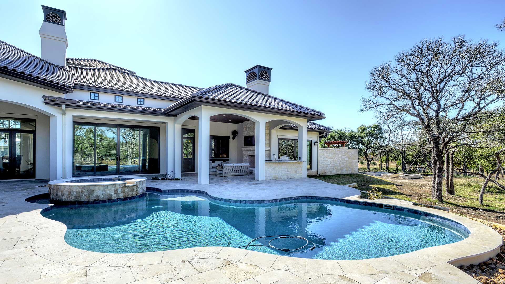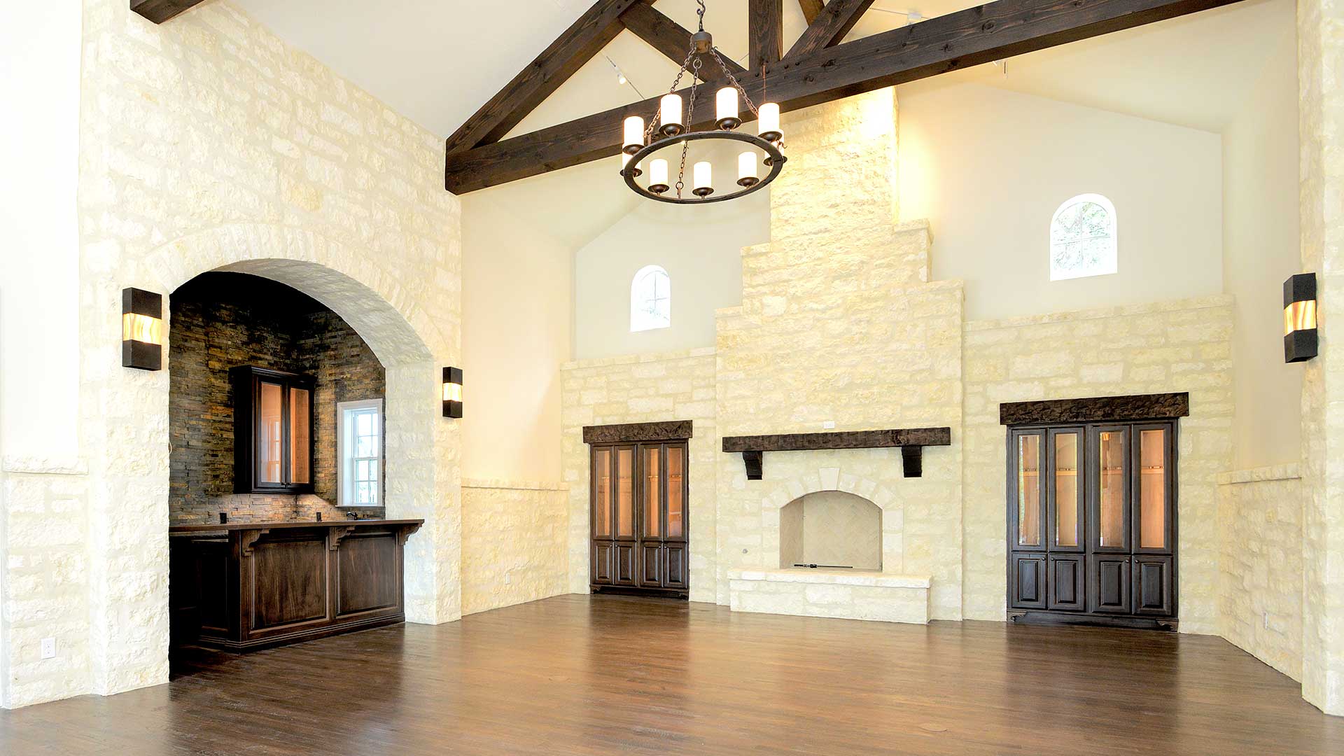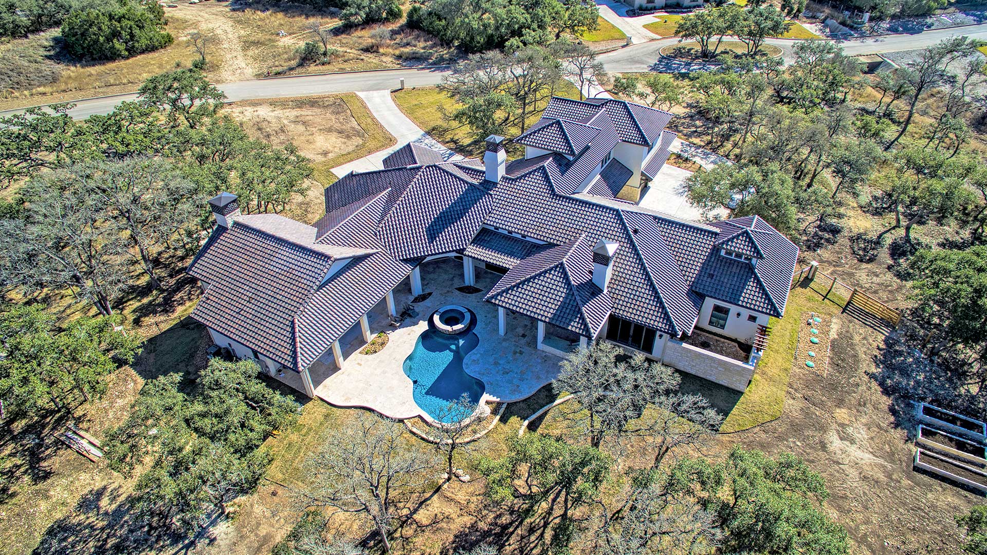This massive estate spreads across the beautiful property and hugs around the inviting swimming pool. With high ceilings and stately stone and wood beams, this home features a handsome study, dramatic trophy room with authentic timber trusses, and a reflection garden.