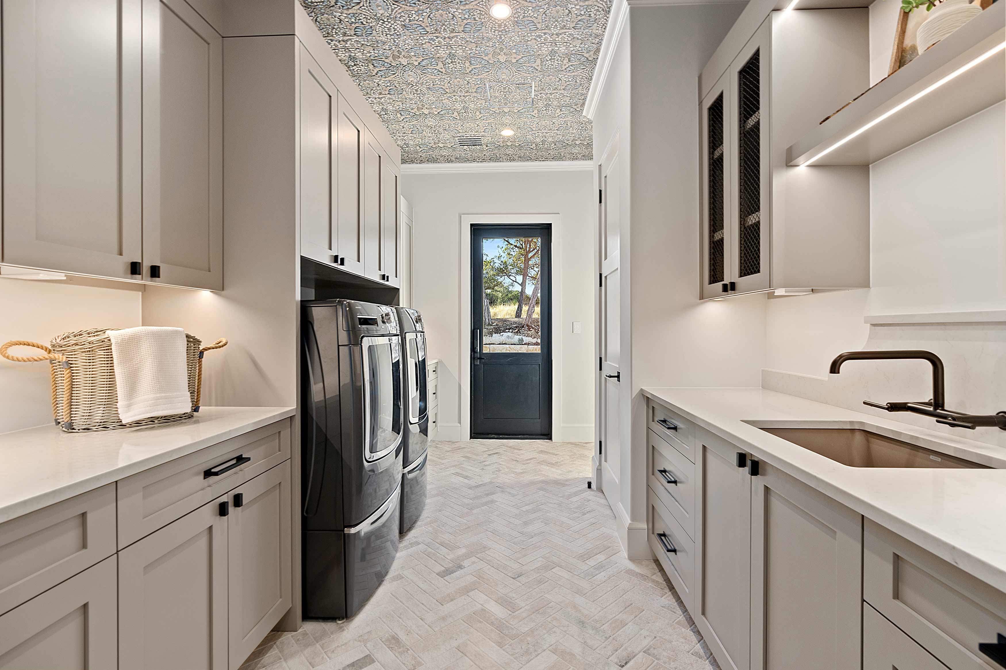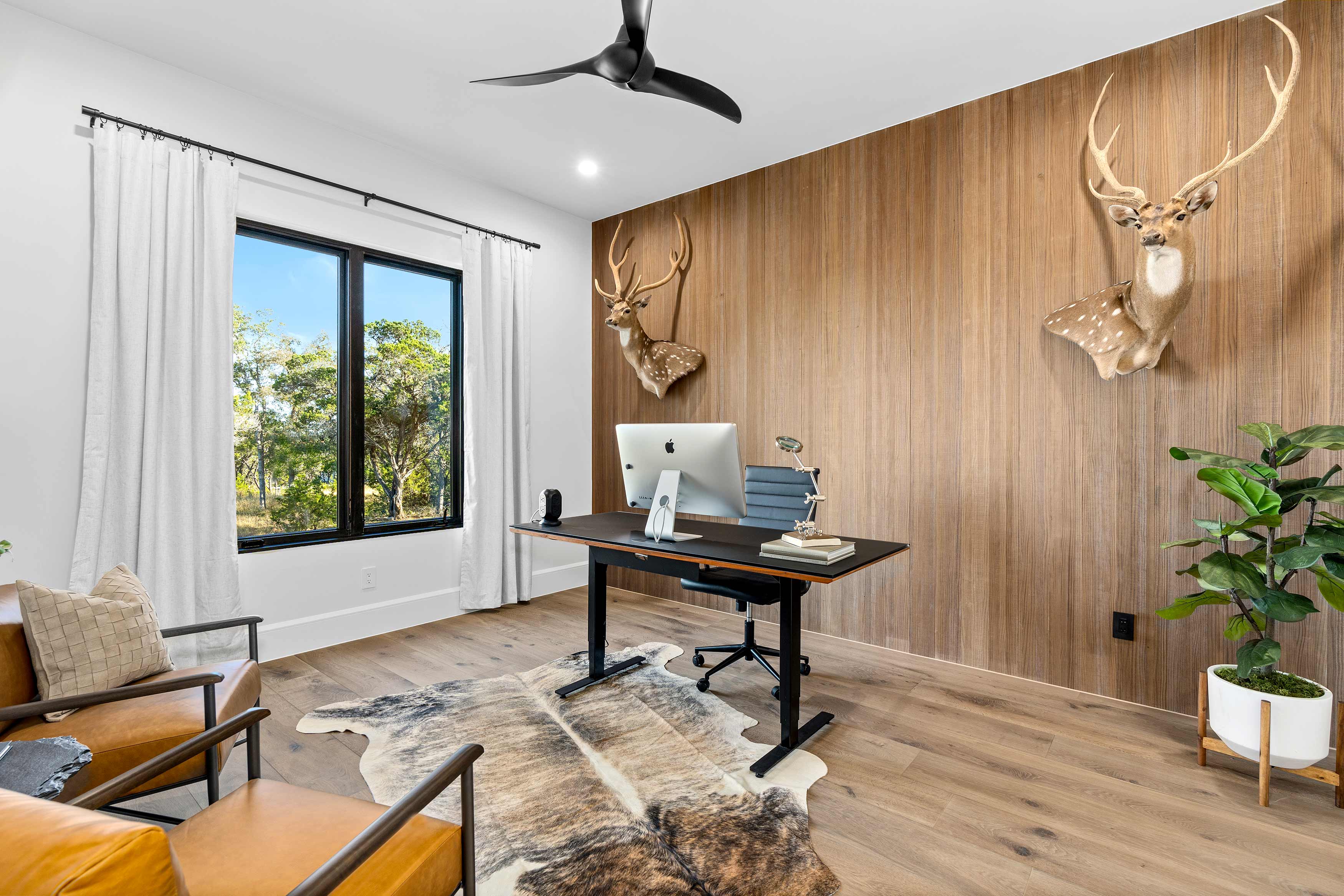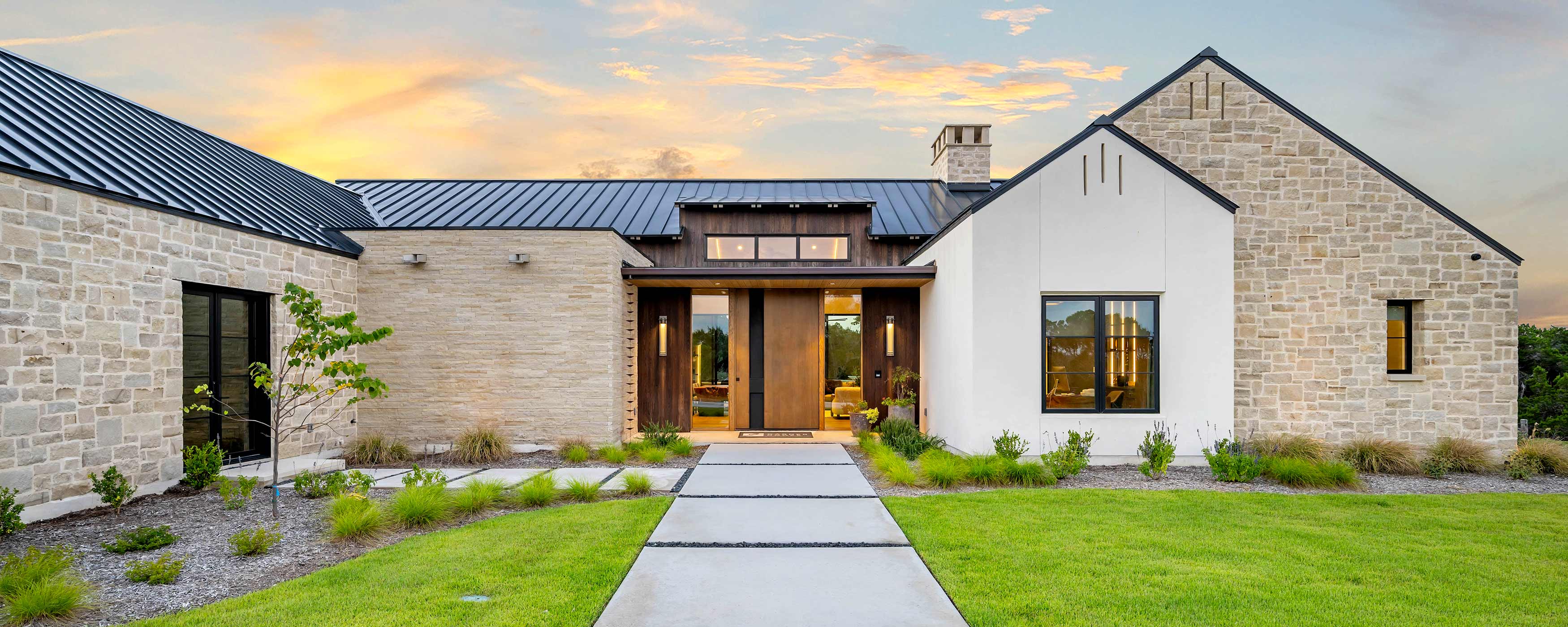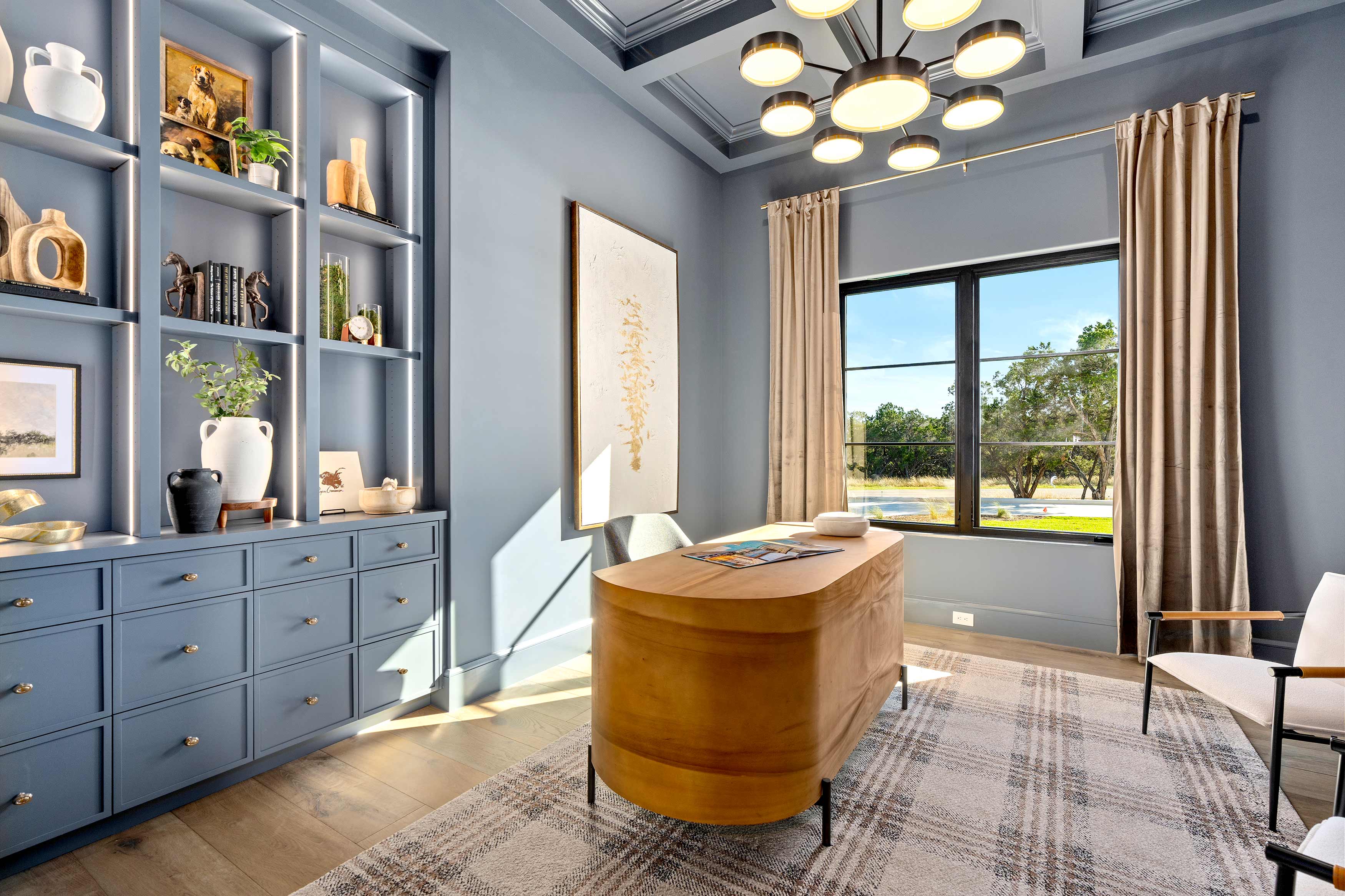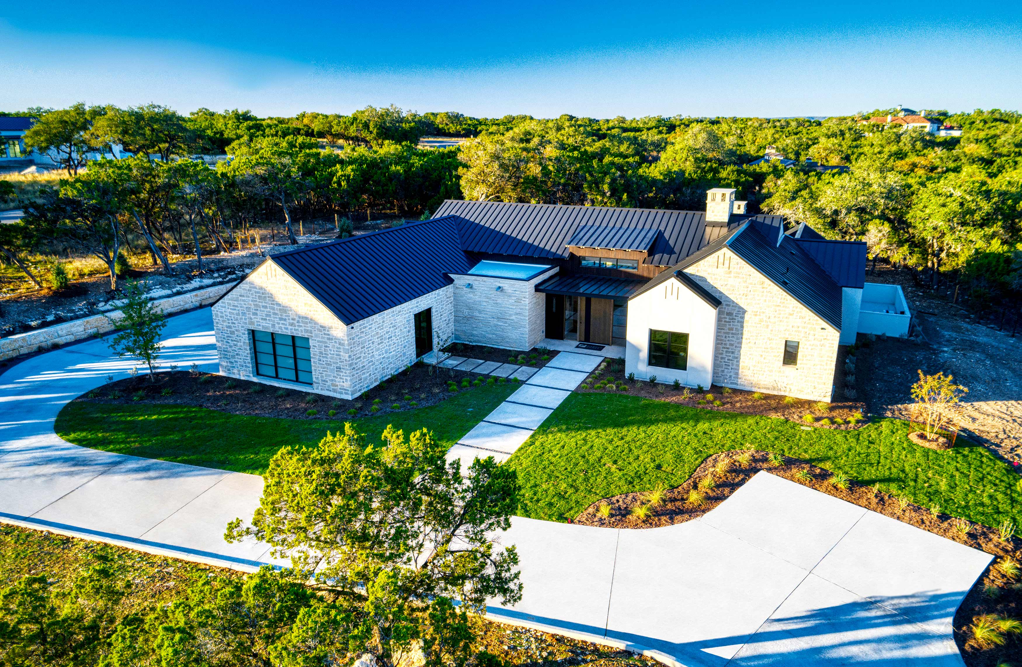 This custom Hill Country Modern home showcases modern elegance with organic warmth, defined by thoughtful craftsmanship and hidden functionality. Vaulted and coffered ceilings, integrated LED lighting and rich oak floors create a seamless flow through spaces designed for everyday comfort and sophisticated entertaining. Warm mushroom-toned cabinetry, hemlock planked ceilings and layered textures bring a sense of calm while sculptural light fixtures and contemporary finishes introduce a refined edge.